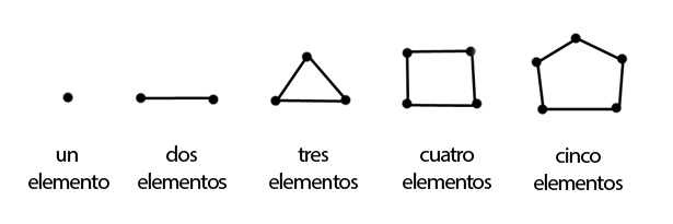 Si transformamos el número de elementos en figuras geométricas, entenderemos que los números impares son mucho más dinámicos que los pares. Mientras que un elemento se corresponde con un único punto, dos elementos lo hacen con una línea. La primera forma geométrica que aparece siguiendo este método es el triángulo, formado por tres elementos. Si pasamos a tratar con cuatro elementos, conseguiremos un cuadrado. Con cinco, un pentágono. Y así, hasta el infinito.