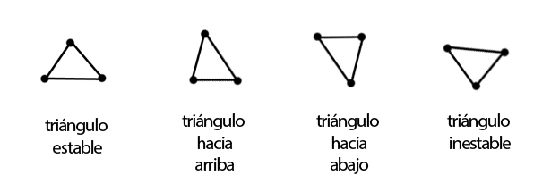Si analizamos estas figuras, vemos que el punto es inmóvil (no se mueve, no tiene dirección). La línea es completamente estática y estable. El triángulo, en cambio, es más dinámico. Puede tener dirección en función de como lo coloquemos e, incluso, puede tener una posición nada estable. El cuadrado vuelve a ser una figura completamente estática. Pero con el pentágono sucede lo mismo que con el triángulo.